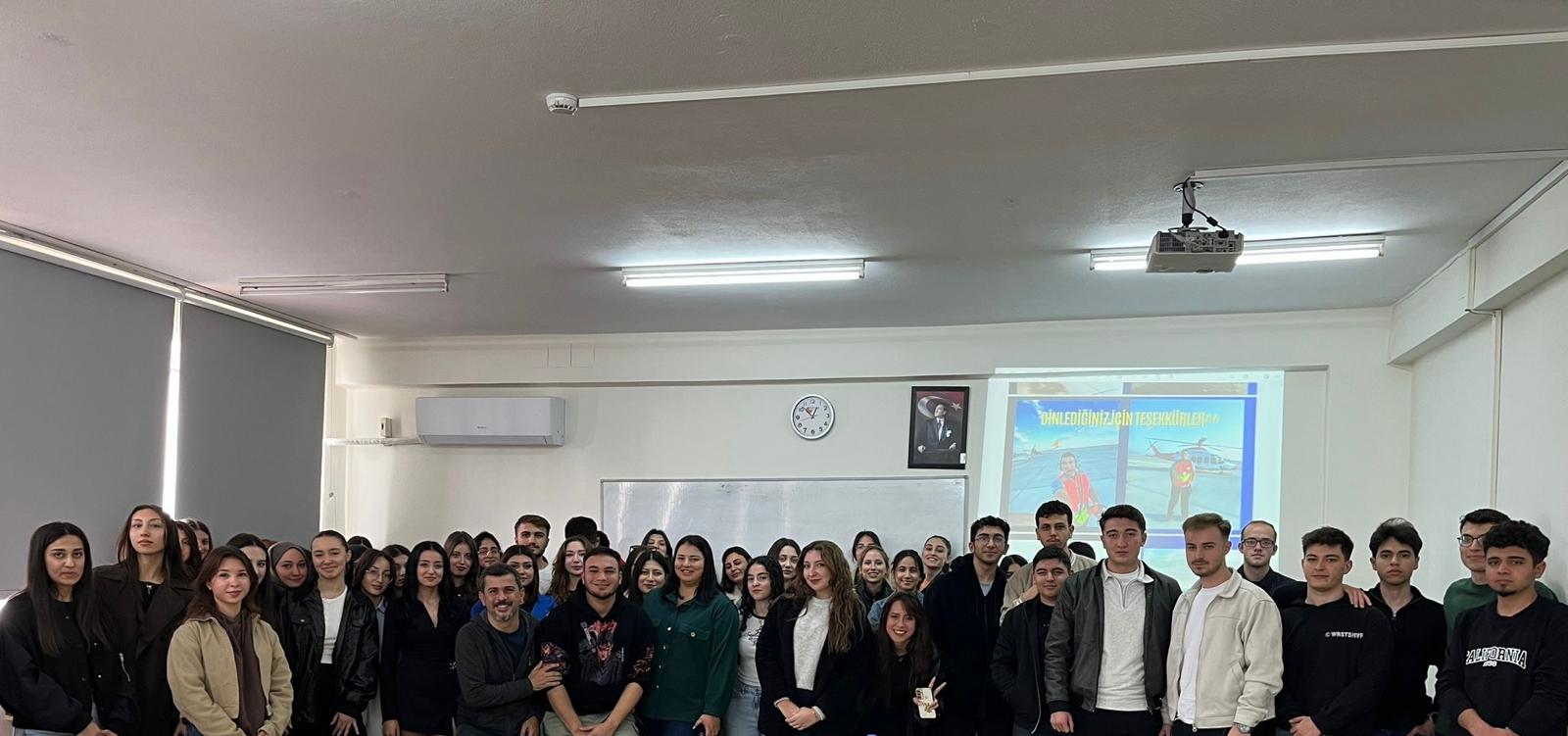 Etkinlikte Toyoğlu, uçuş operasyonlarının perde arkasında yürütülen süreçlere dair önemli bilgiler aktararak operasyon yönetiminin havacılıkta üstlendiği kritik rolü vurguladı. gerçek vaka örnekleri ve çalışma tecrübeleri, öğrencilerimize aktararak farkındalıklarını artırılmasına yardımcı oldu